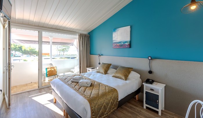 Chambre face à l’océan avec un balcon au 1er étage ou au rez de chaussé avec terrasse sur le jardin piscine